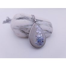 Csepp formájú beton nyaklánc türkíz vagy lila csillogással - ezüst színű kerettel
