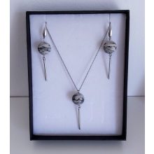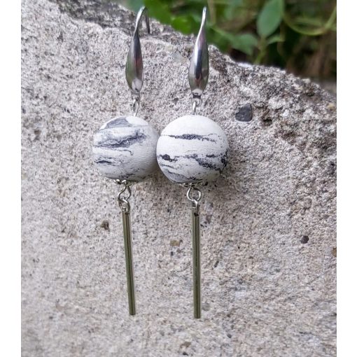 Márványos beton golyók ezüst színű díszítő lógóval.